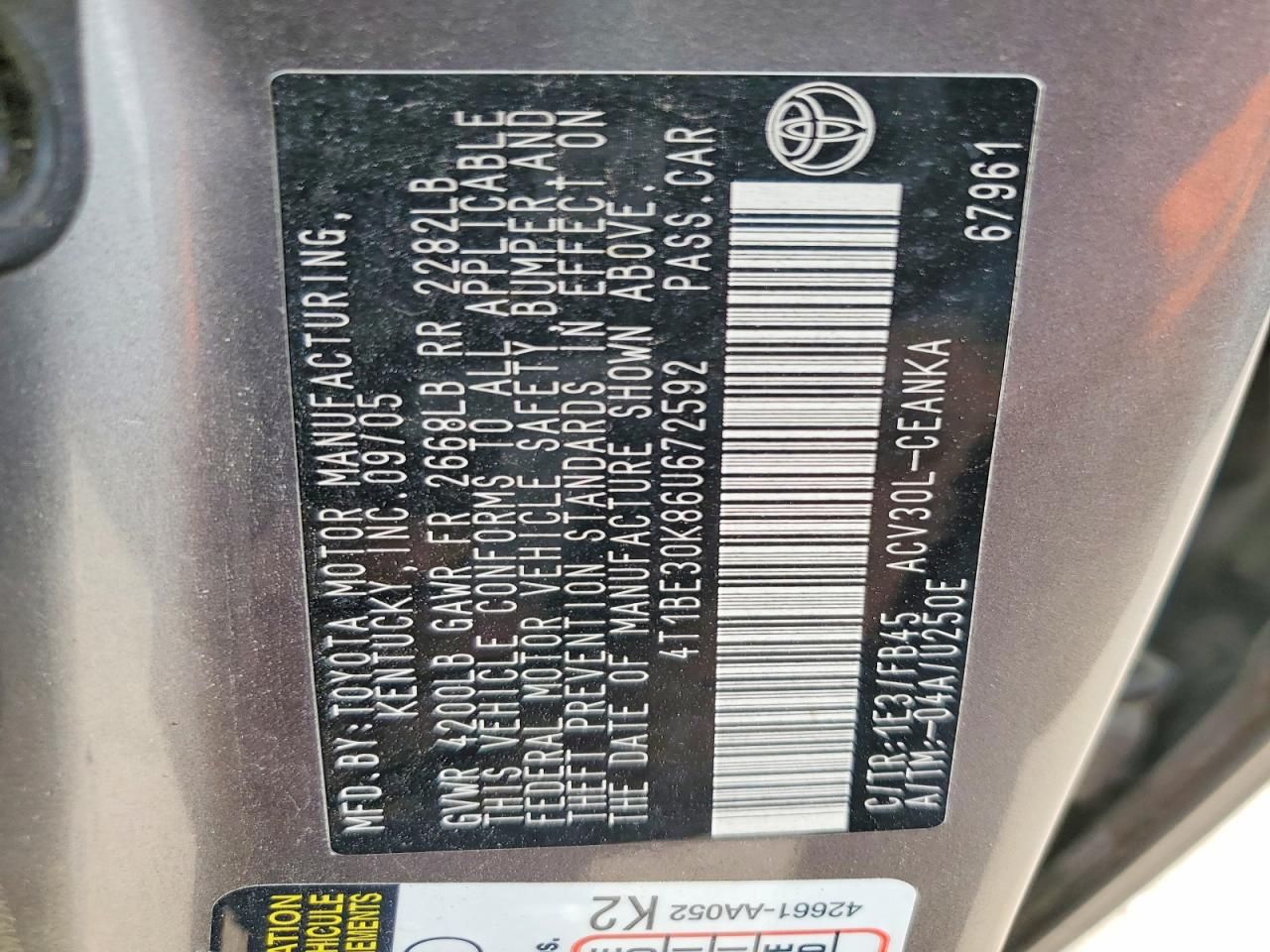 4T1BE30K86U672592