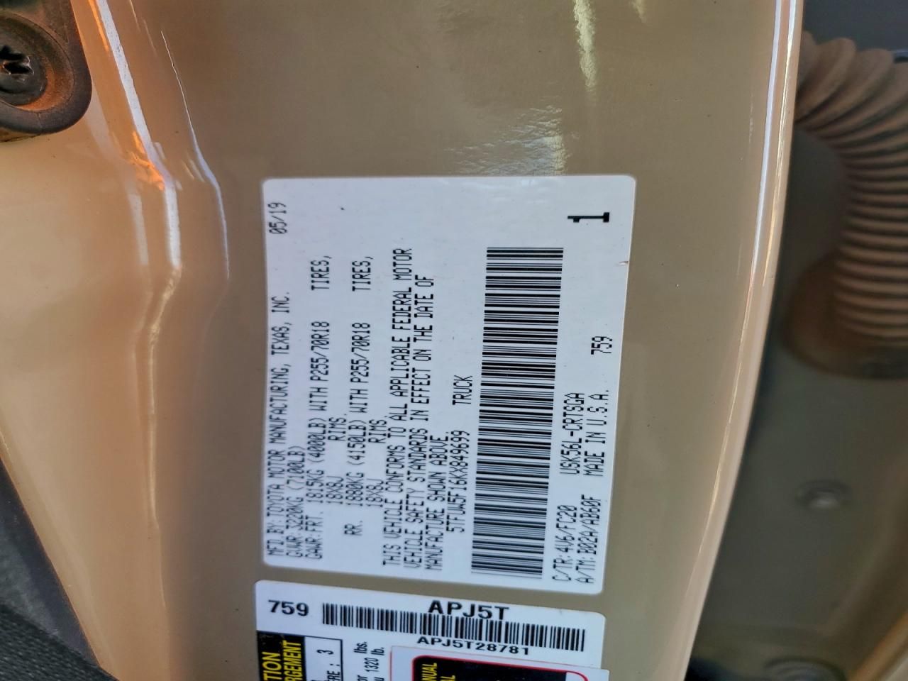5TFUW5F16KX849699