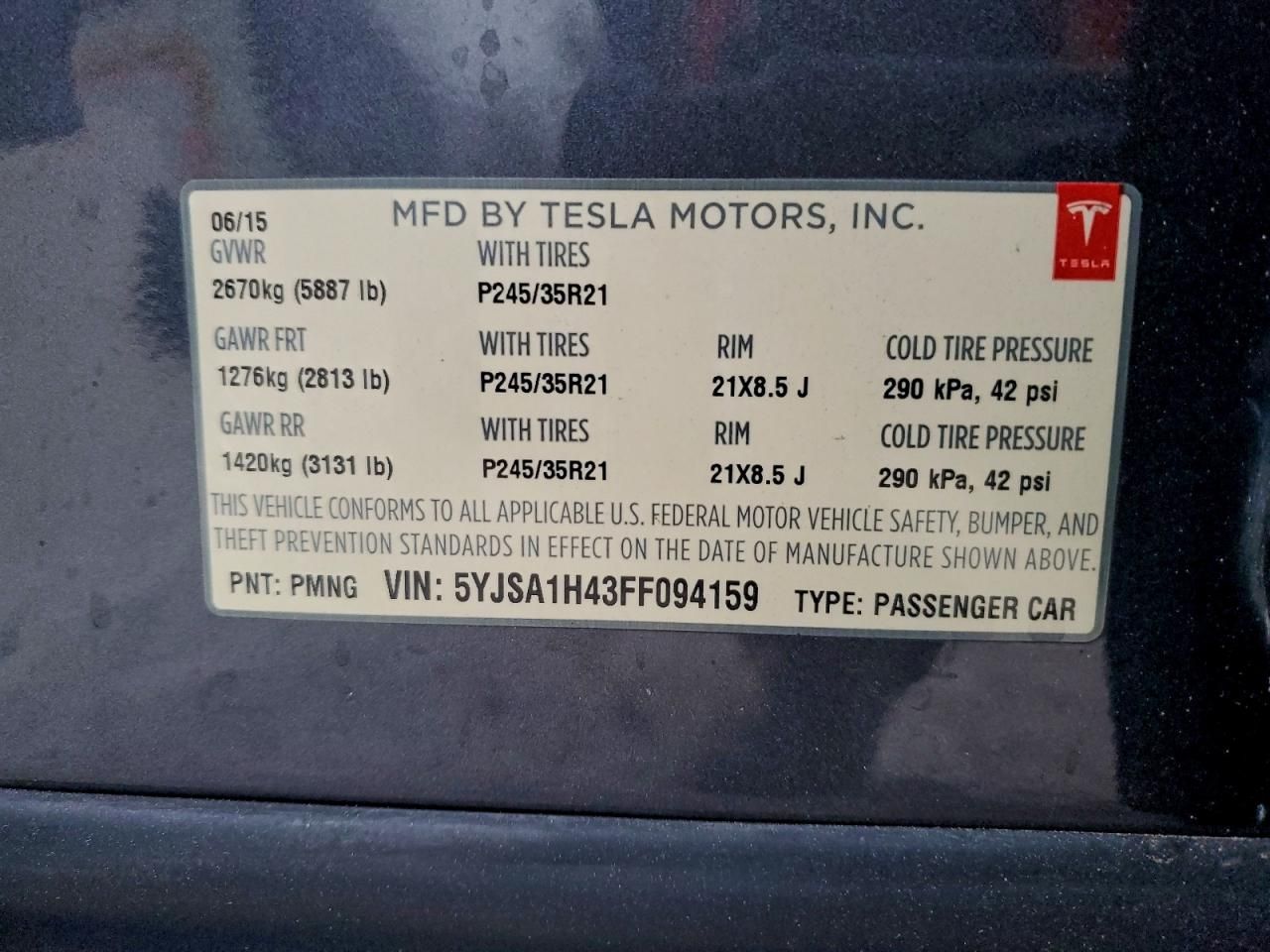2015 TESLA MODEL S P8