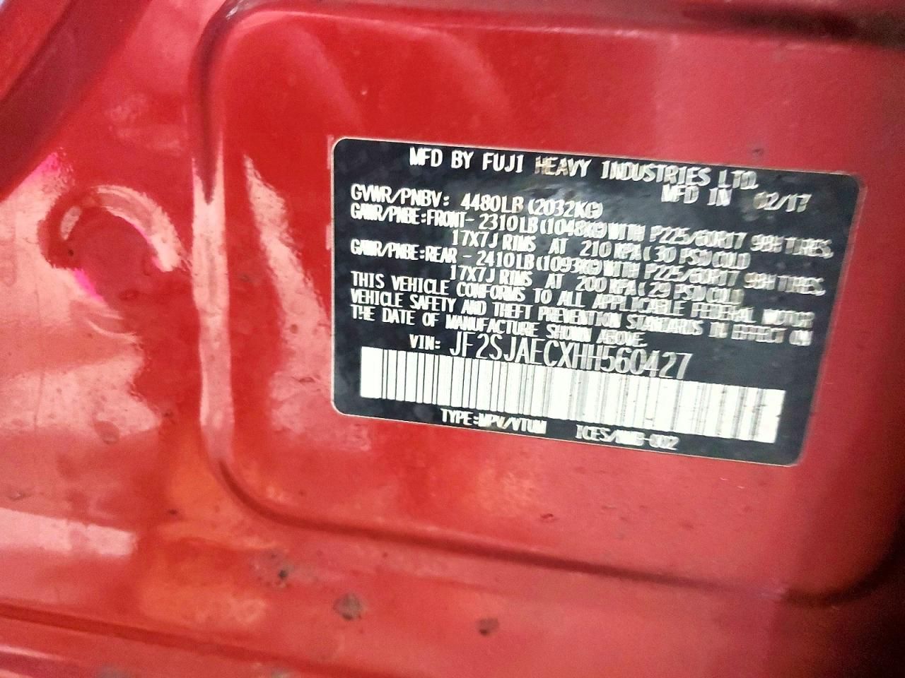 JF2SJAECXHH560427