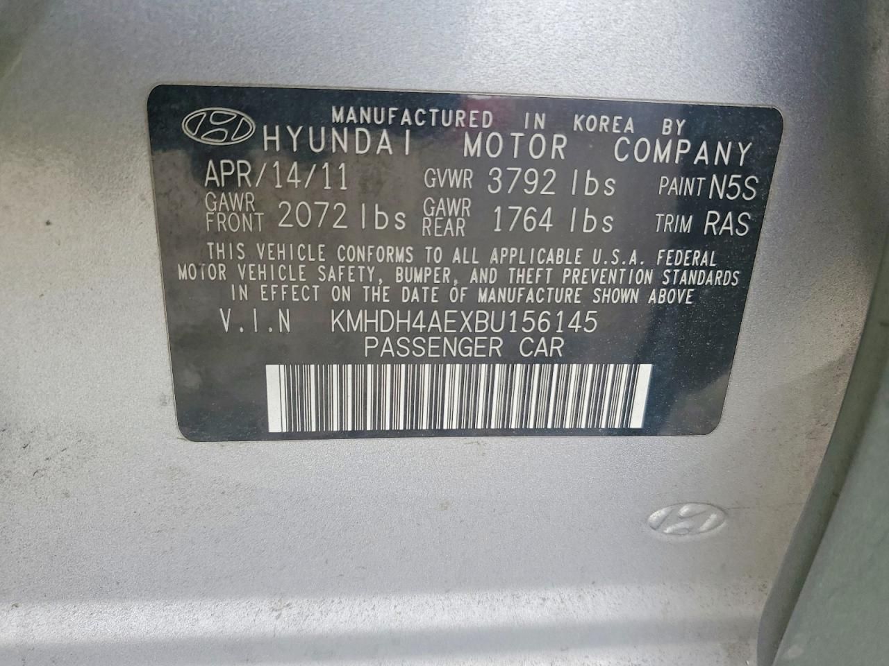 2011 HYUNDAI ELANTRA GL