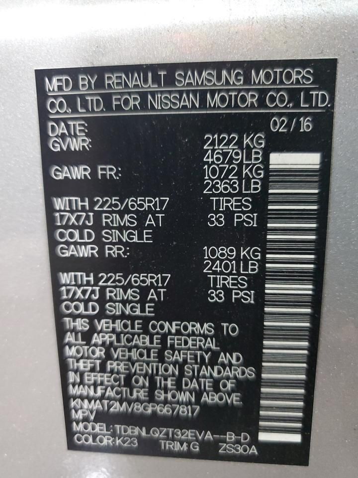 2016 NISSAN ROGUE S