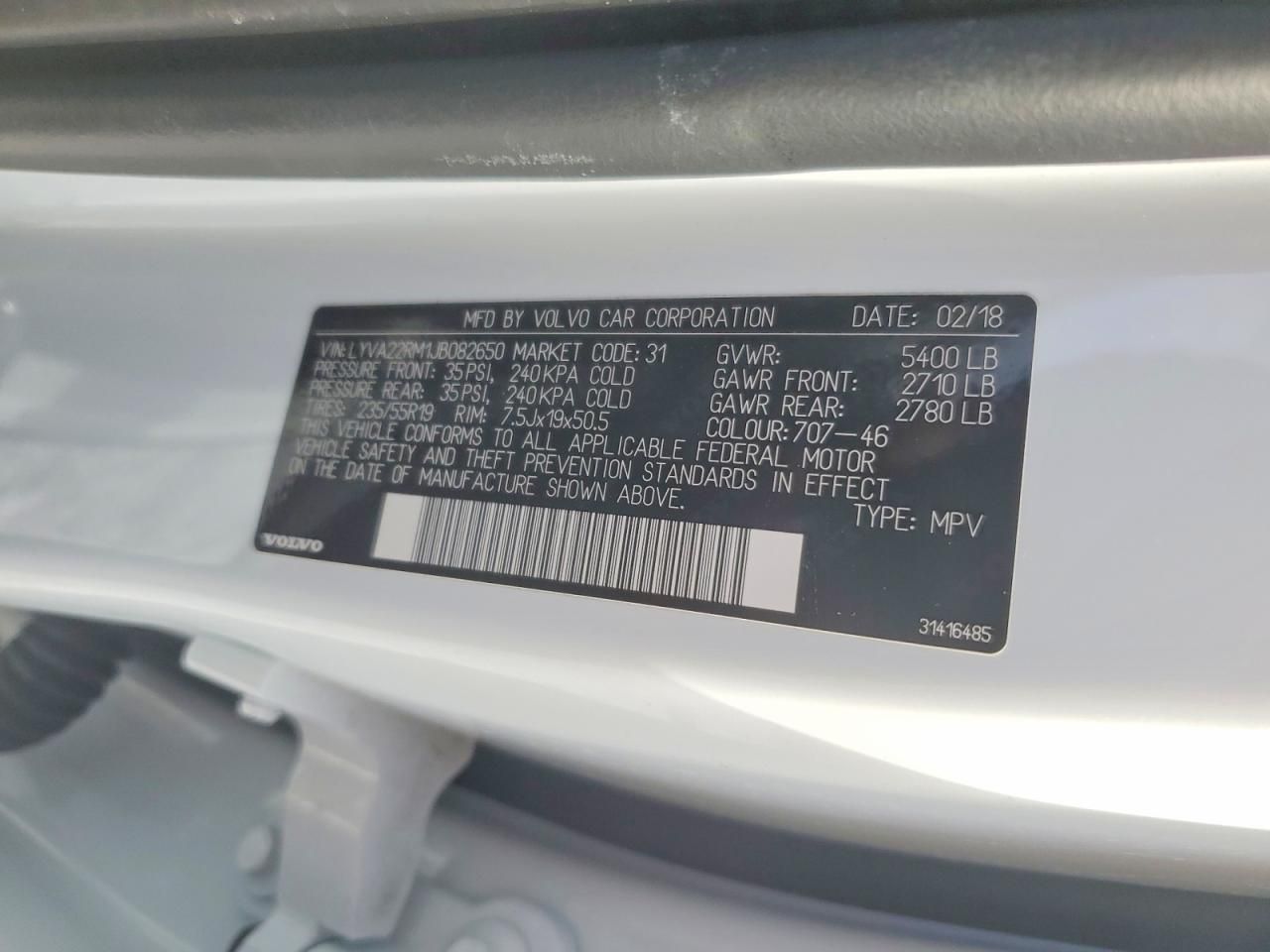 2018 VOLVO XC60 T6 R-